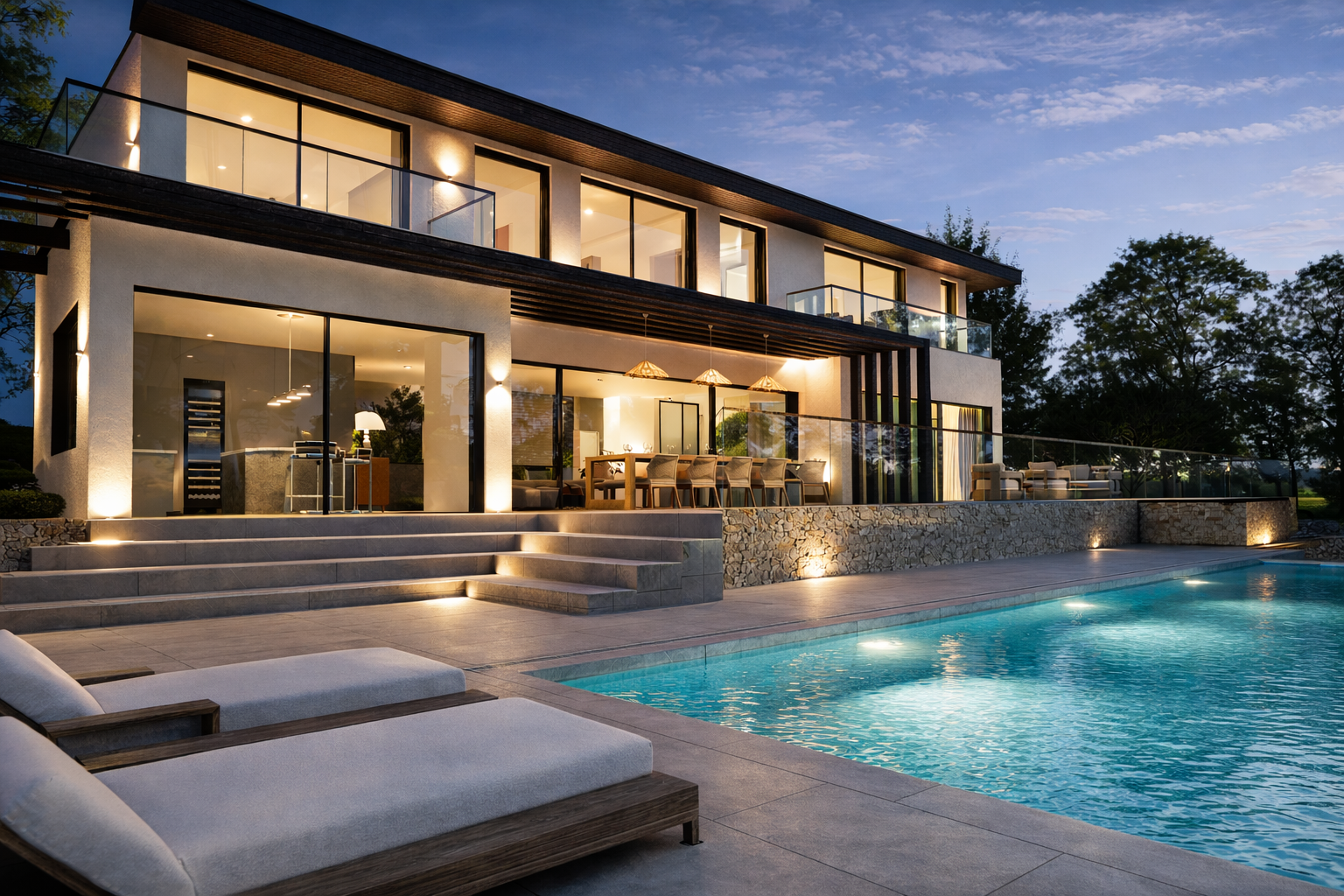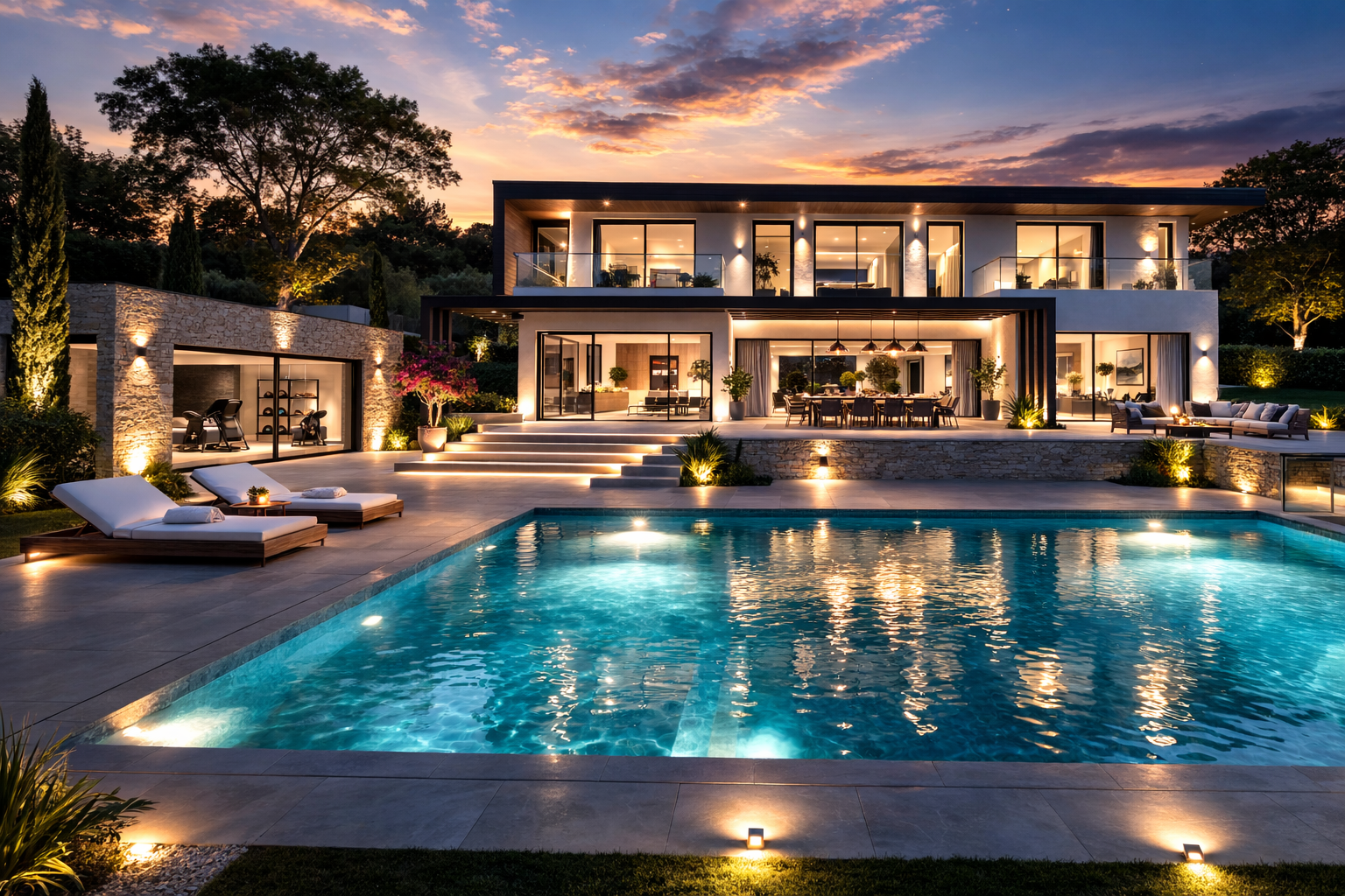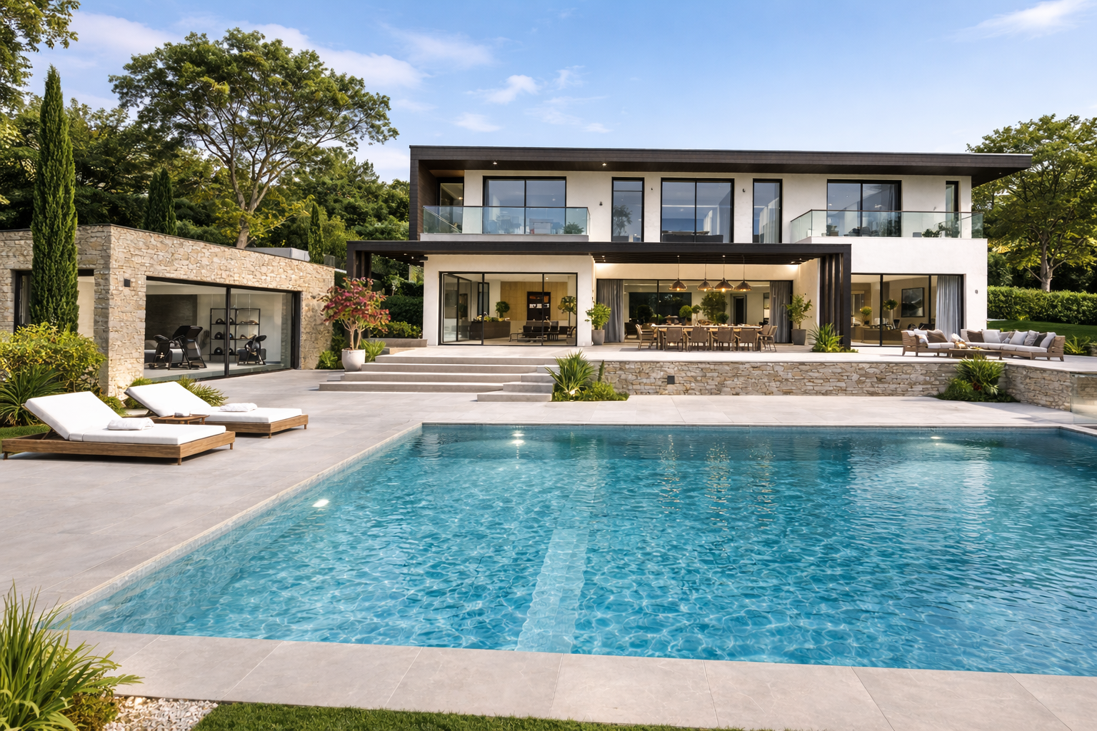 L’espace nuit comprend 4 suites, dont une suite parentale de plus de 80 m² conçue comme un véritable espace privé. Salle de sport, espaces premium et garage 4 voitures complètent l’ensemble.